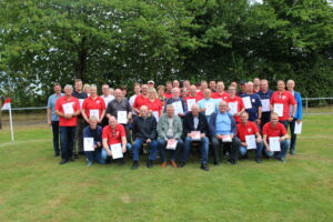 Beim offiziellen Festakt stellten Bürgermeister Josef Suermann und der Vertreter des FLVW Wolfgang Borgolte das Engagement der Menschen für ihren Verein und das gelebte Miteinander heraus. Stefan Vogt, 1. Vorsitzender, blickte dann auf 60 Jahre Vereinsgeschichte zurück und stellte schließlich fest: „Freundschaft ist der wahre Sieg in einem Fußballspiel.“ Im Anschluss wurden die langjährigen Mitglieder geehrt. Es war ein ganz besonderer Moment, als der Vorstand, begleitet von stehenden Ovationen der Gäste, die Gründungmitglieder Herbert Köhne, Paul Köhne, Walter Vogt und Josef Sprenger für 60 Jahre Treue zum SV Bremerberg auszeichnete.