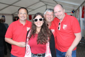 Claudia Ferentschik aus Altenkirchen ist die glückliche Gewinnerin. Sie und ihr Mann waren für einen Wochenendtrip zu Verwandten nach Bremerberg gekommen. Beide waren von dem Fest und der Aktion so begeistert, dass sie sofort den Mitgliedsantrag ausfüllten und unterschieben. Claudia hatte dann das Glück, die Nummer 100 zu sein und durfte sich über ein rot-weißes Fanpaket sowie zwei Jahre Beitragsfreiheit freuen.
